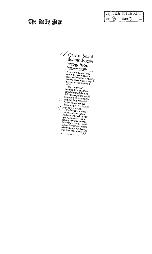 Qawmi board demands govt recognition Published on Newspaper The Daily Star Category Madrasah Education Madrasah Education Qawmi Download