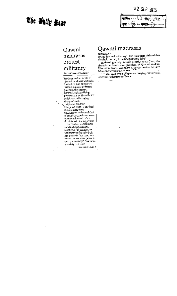 Qawmi madrasas protest militancy Published on Newspaper The Daily Star Category Madrasah Education Madrasah Education Qawmi Download