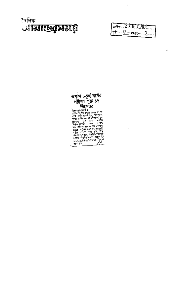 অনার্স চতুর্থ বর্ষের পরীক্ষা শুরু ১৭ ডিসেম্বর Published on Newspaper দৈনিক আমাদের সময় Category Public Examination Public Examination Honors(Pass) Download