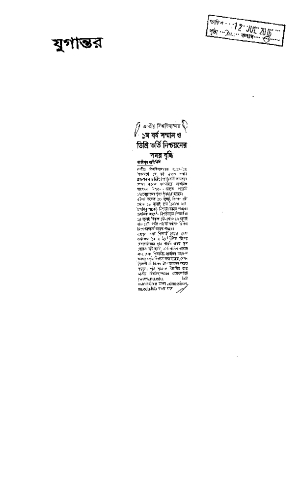 ১ম বর্ষ সম্মান ও ডিগ্রি ভর্তি নিশ্চয়নের সময় বৃদ্ধি Published on Newspaper দৈনিক যুগান্তর Category Public Examination Public Examination Honors(Pass) Download