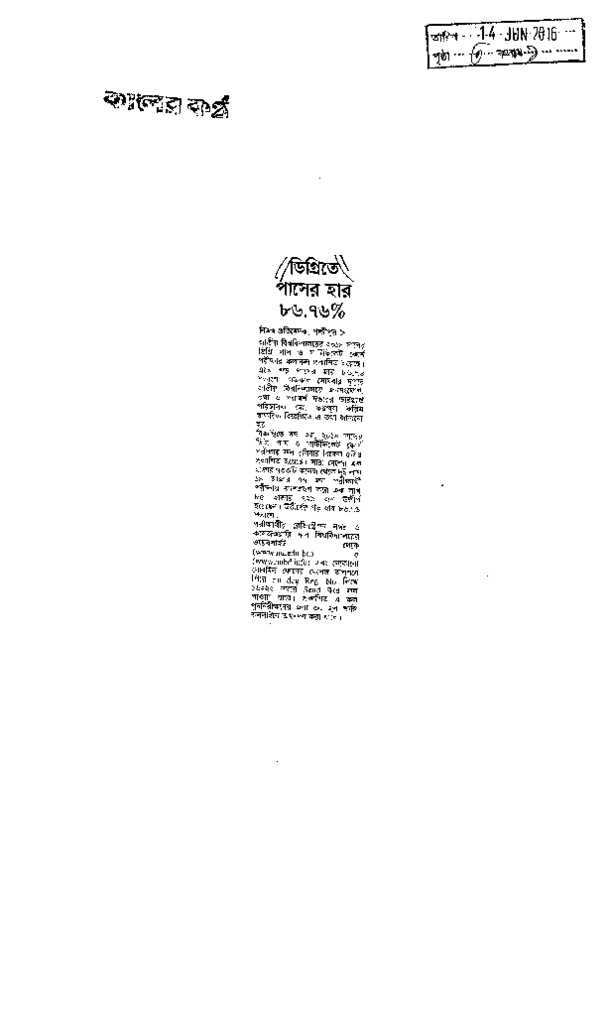 ডিগ্রিতে পাসের হার ৮৬.৭৬% Published on Newspaper দৈনিক কালের কন্ঠ Category General Education General Education Higher Education Public Download