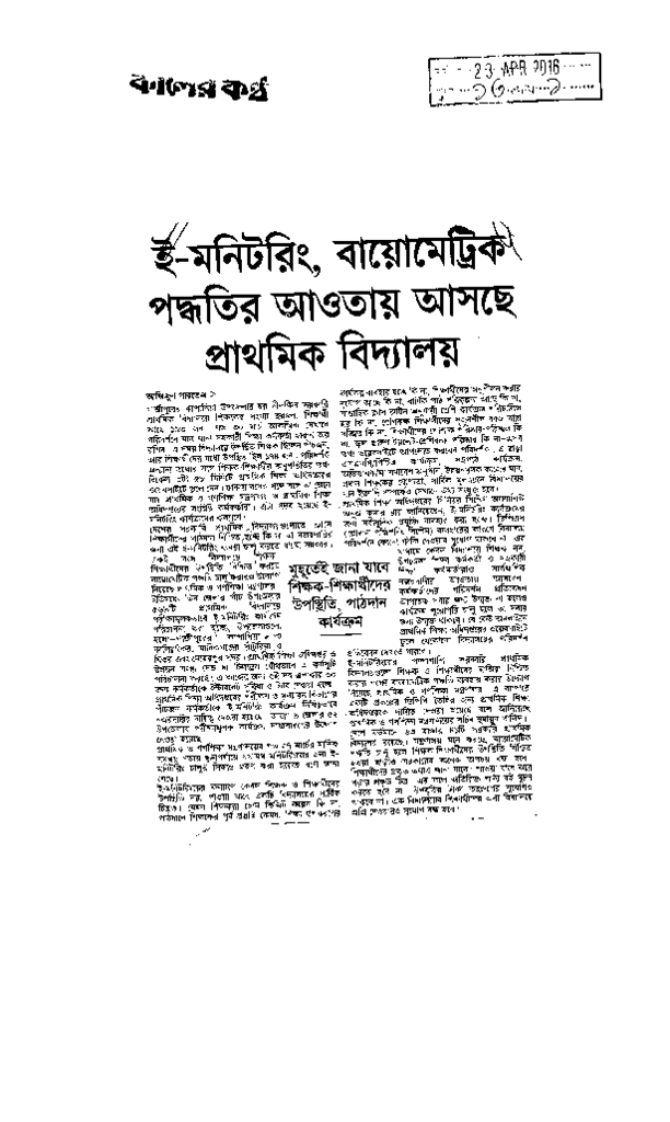 ই-মনিটরিং, বায়োমেট্রিক পদ্ধতির আওতায় আসছে প্রাথমিক বিশ্ববিদ্যালয় Published on Newspaper দৈনিক কালের কন্ঠ Category General Education General Education Download