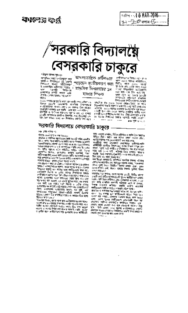 সরকারি বিদ্যালয়ে বেসরকারি চাকুরে Published on Newspaper দৈনিক কালের কন্ঠ Category General Education General Education Download