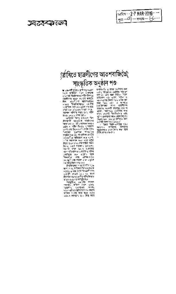 রাবিতে ছাত্রলীগের আতশবাজিতে সাংস্কৃতিক অনুষ্ঠান পণ্ড Published on Newspaper দৈনিক সমকাল Category General Education General Education Higher Education Public Download