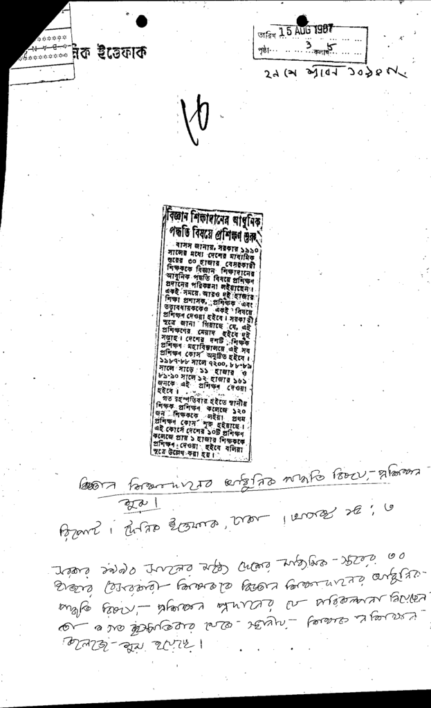 বিজ্ঞান শিক্ষাদানের আধুনিক পদ্ধতি বিষয়ে প্রডশিক্ষণ শুরু Published on Newspaper দৈনিক ইত্তেফাক Category Science Education Download