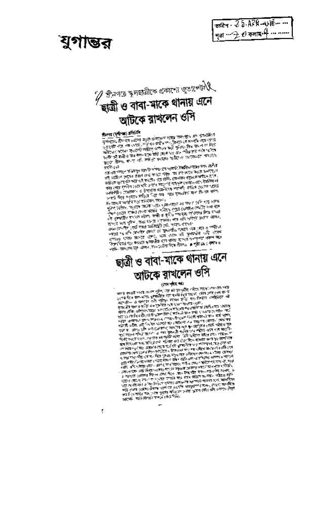 ছাত্রী ও বাবা-মাকে থানায় এনে আটকে রাখলেন ওসি Published on Newspaper দৈনিক যুগান্তর Category Campus Terrorism Download