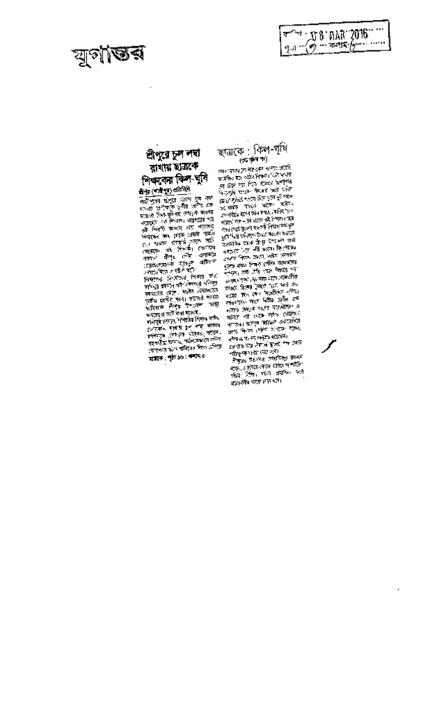 শ্রীপুরে চুল লম্বা রাখায় ছাত্রকে শিক্ষকের কিল-ঘুষি