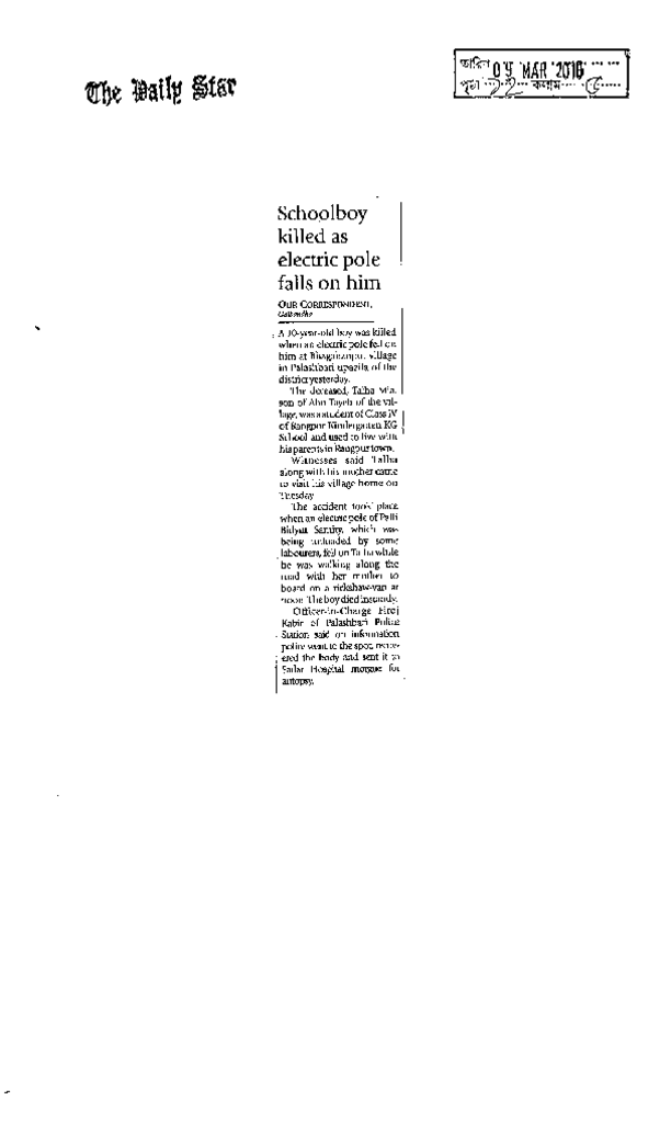 Schoolboy killed as electric pole falls on him