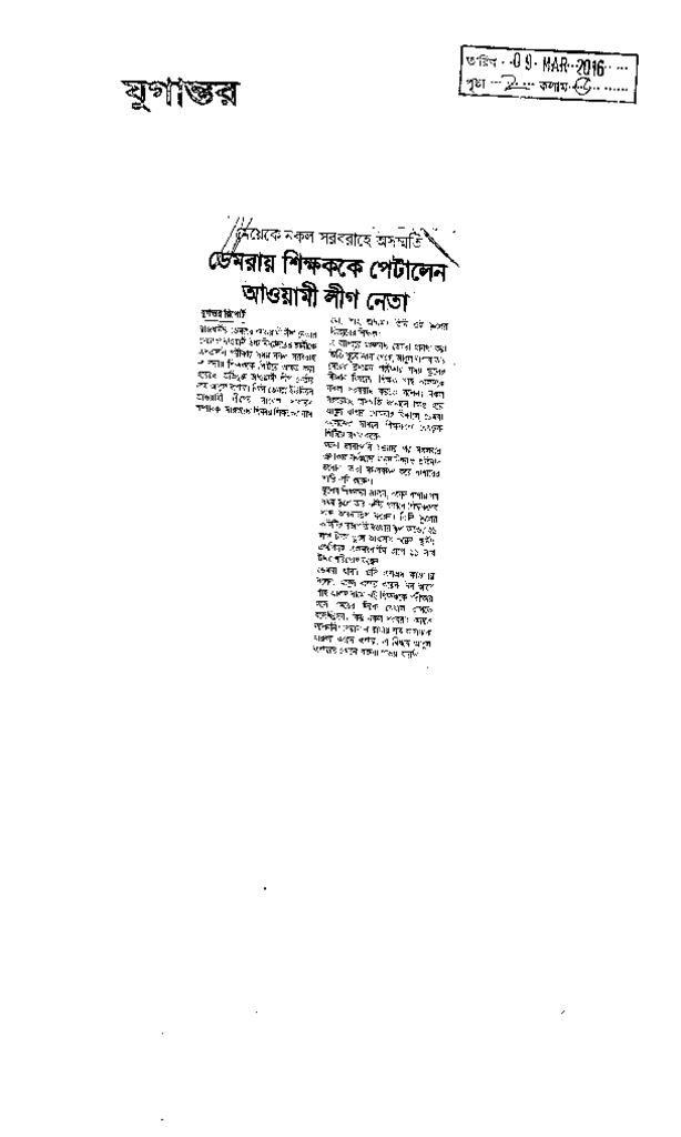 ডেমরায় শিক্ষককে পেটালেন আওয়ামী লীগ নেতা Published on Newspaper দৈনিক যুগান্তর Category Campus Terrorism Download