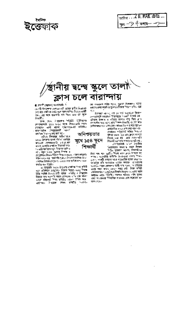 স্থানীয় দ্বন্দ্বে স্কুলে তালা ক্লাস চলে বারান্দায় Published on Newspaper দৈনিক ইত্তেফাক Category Campus Terrorism Download