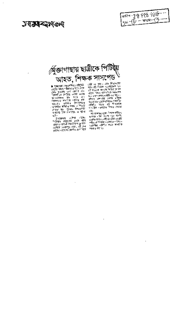 মুক্তাগাছায় ছাত্রীকে পিটিয়ে আহত, শিক্ষক সাসপেন্ড Published on Newspaper দৈনিক সমকাল Category Campus Terrorism Download