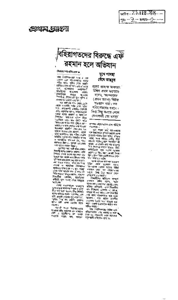 বহিরাগতদের বিরুদ্ধে এফ রহমান হলে অভিযান Published on Newspaper দৈনিক প্রথম আলো Category Campus Terrorism Download