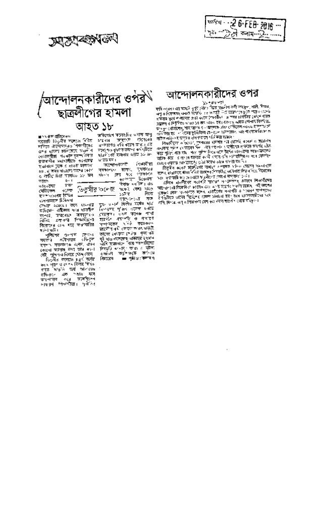 আন্দোলনকারীদের ছাত্রলীগের হামলা আহত ১৮ Published on Newspaper দৈনিক সমকাল Category Campus Terrorism Download