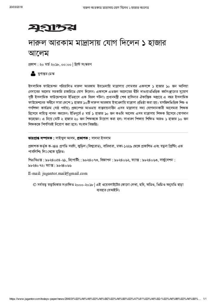 দারুল আরকাম মাদ্রাসায় যোগ দিলেন ১ হাজার আলেম Published on Newspaper দৈনিক যুগান্তর Category Madrasah Education Download