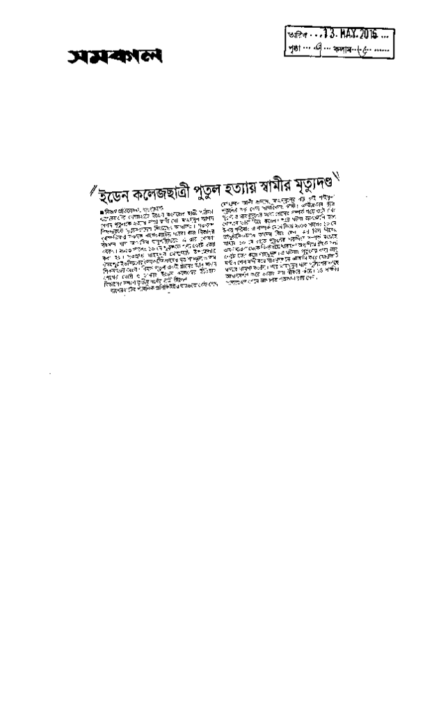 ইডেন কলেজছাত্রী পুতুল হত্যায় স্বামীর মৃত্যুদণ্ড Published on Newspaper দৈনিক সমকাল Category Campus Terrorism Download