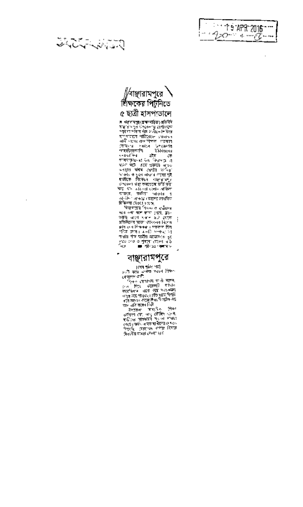 বাঞ্ছারামপুরে শিক্ষকের পিটুনিতে ৫ ছাত্রী হাসপাতালে Published on Newspaper দৈনিক সমকাল Category Campus Terrorism Download