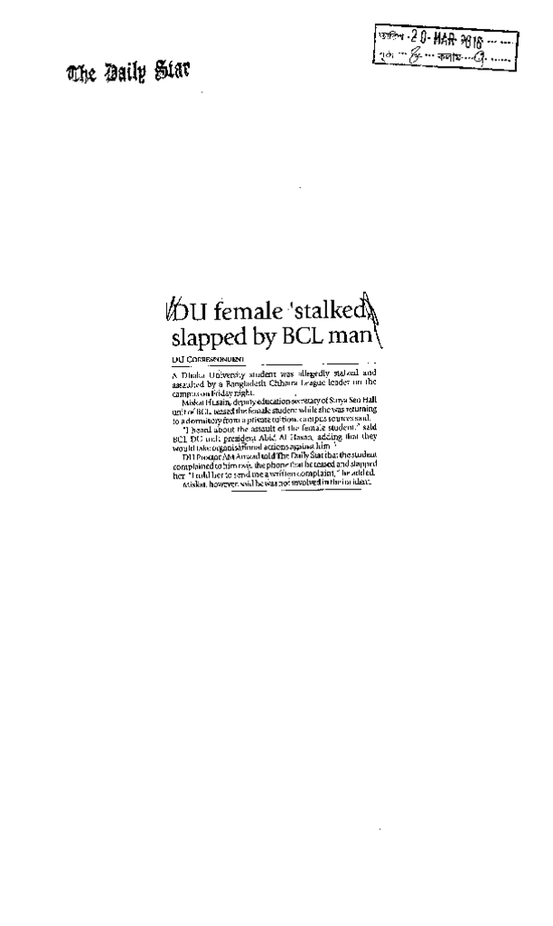DU female stalked slapped by BCL man