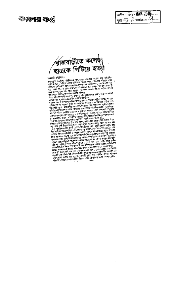 রাজবাড়ীতে কলেজ ছাত্রকে পিটিয়ে হত্যা Published on Newspaper দৈনিক কালের কন্ঠ Category Campus Terrorism Download
