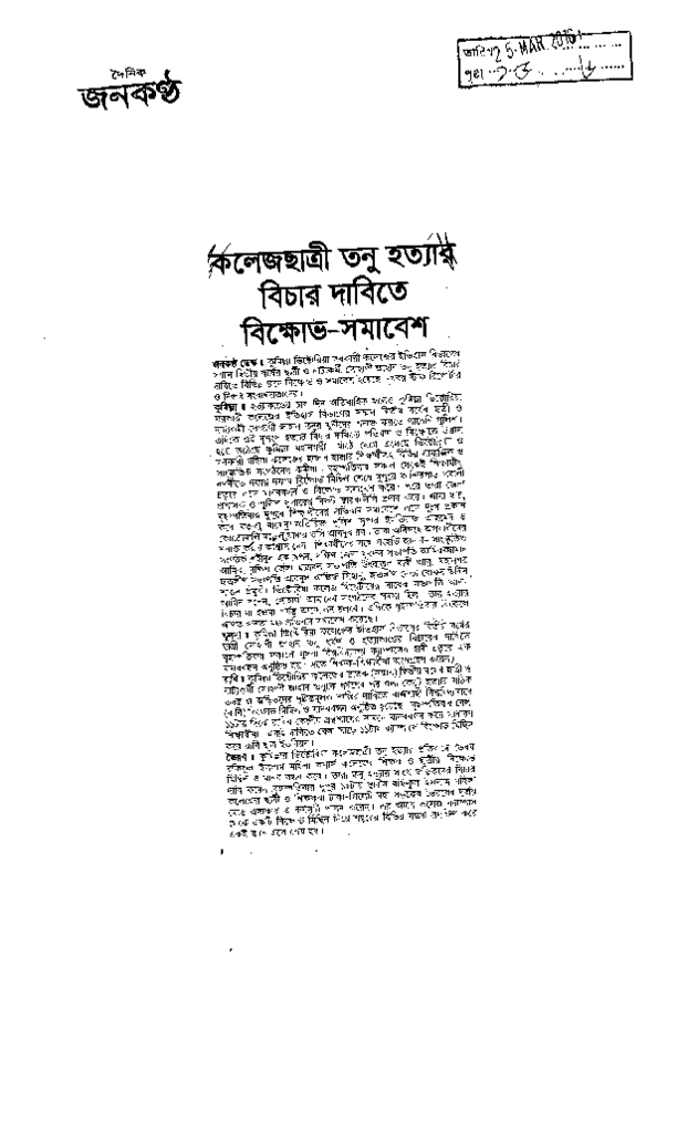 কলেজছাত্রী তুন হত্যার বিচার দাবিতে বিক্ষোভ-সমাবেশ Published on Newspaper দৈনিক জনকণ্ঠ Category Campus Terrorism Download