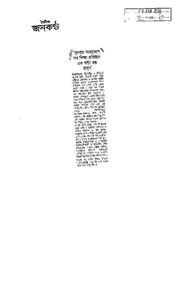 বুধবার সারাদেশে সব শিক্ষা প্রতিষ্ঠান এক ঘন্টা বন্ধ রাখুন Published on Newspaper দৈনিক জনকণ্ঠ Category Campus Terrorism Download