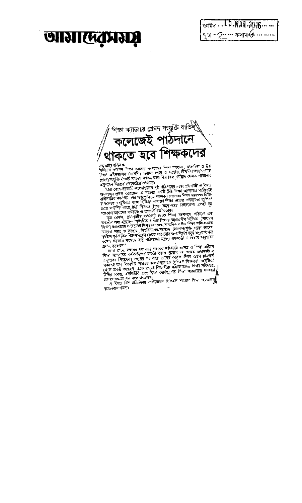 কলেজেই পাঠদানে থাকতে হবে শিক্ষকদের