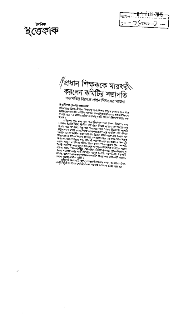 প্রধান শিক্ষককে মারধর করলেন কমিটির সভাপতি Published on Newspaper দৈনিক ইত্তেফাক Category Campus Terrorism Download