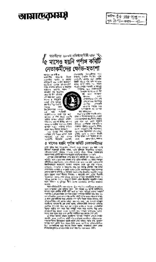 ৫ মাসেও হয়নি পূর্ণাঙ্গ কমিটি নেতাকর্মীদের ক্ষোভ-হতাশা Published on Newspaper দৈনিক আমাদের সময় Category Student Politics Download