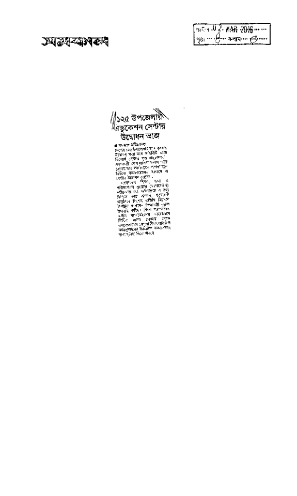 ১২৫ উপজেলায় এডুকেশন সেন্টার উদ্ধোথন আজ Published on Newspaper দৈনিক সমকাল Category Educational Ministry / Departments Education Ministry / Division / Directorate Download