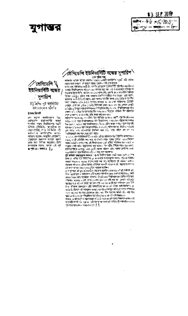 প্রেসিডেন্সি ইউনিভার্সিটি বন্দের সুপারিশ Published on Newspaper দৈনিক যুগান্তর Category General Education General Education Higher Education Private Download