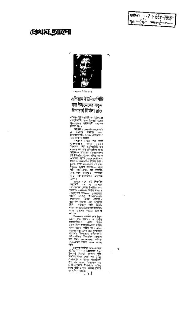িএশিয়ান ইউনিভার্সিটি ফর উইমেনের নতুন উপাচার্য নির্মলা রাও