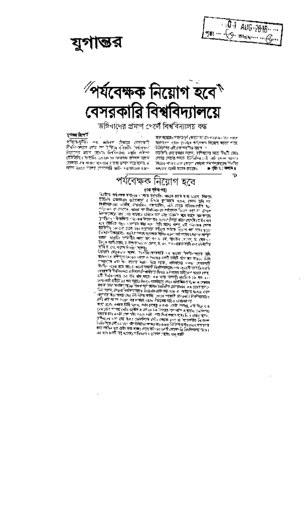 পর্যবেশক্ষ নিয়োগ হবে বেসরকারি বিশ্ববিদ্যালয়ে Published on Newspaper দৈনিক যুগান্তর Category General Education General Education Higher Education Private Download