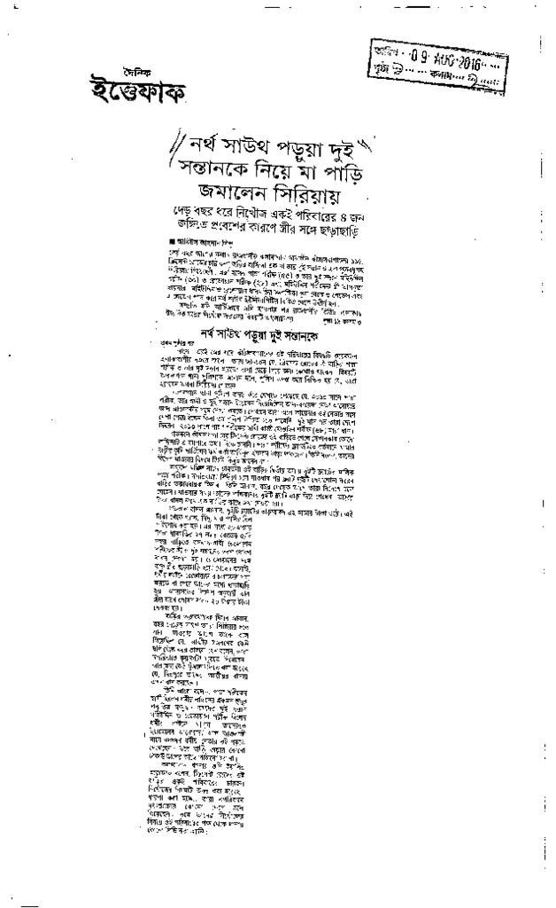 নর্থ সাউথ পাড়ুয়া দুই সন্তানকে নিয়ে মা পাড়ি জমালেন সিরিয়ায়
