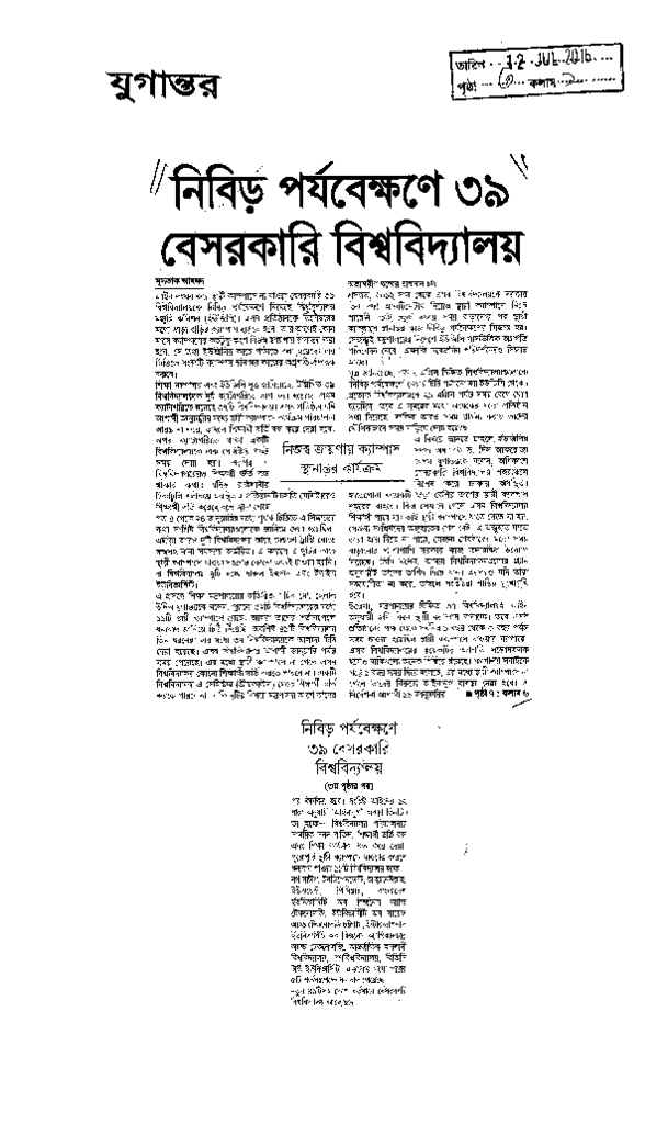 নিবিড় পর্যবেক্ষণে ৩৯ বেসরকারি বিশ্ববিদ্যালয় Published on Newspaper দৈনিক যুগান্তর Category General Education General Education Higher Education Private Download