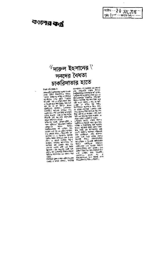 দারুল ইহসানের সনদের বৈধতা চাকরিদাতার হাতে Published on Newspaper দৈনিক কালের কন্ঠ Category General Education General Education Higher Education Private Download