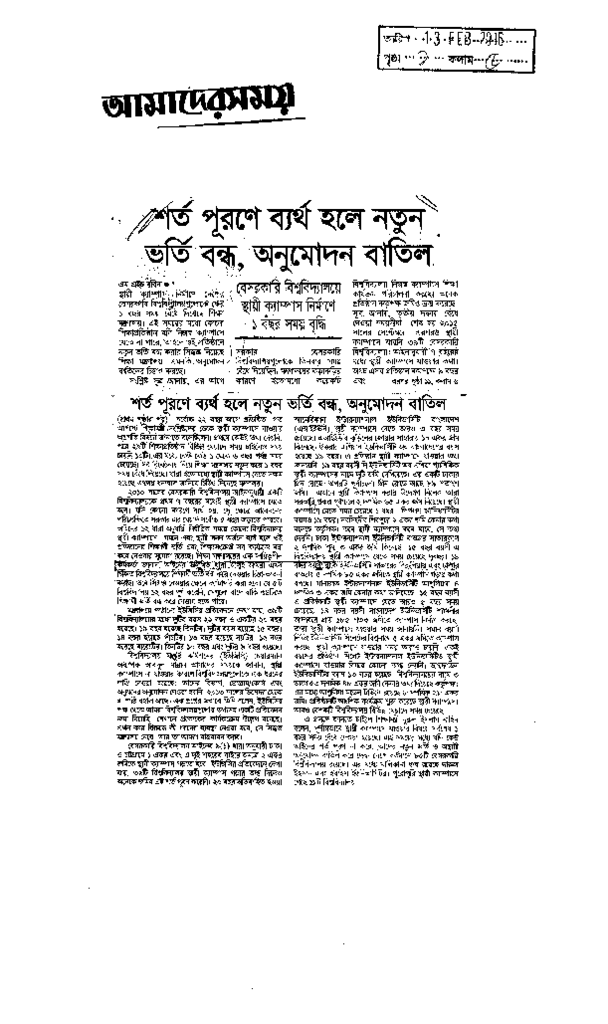 শর্ত পূরণে ব্যর্থ হলে নতুন ভর্তি বন্ধ, অনুমোদন বাতিল Published on Newspaper দৈনিক আমাদের সময় Category General Education General Education Higher Education Private Download