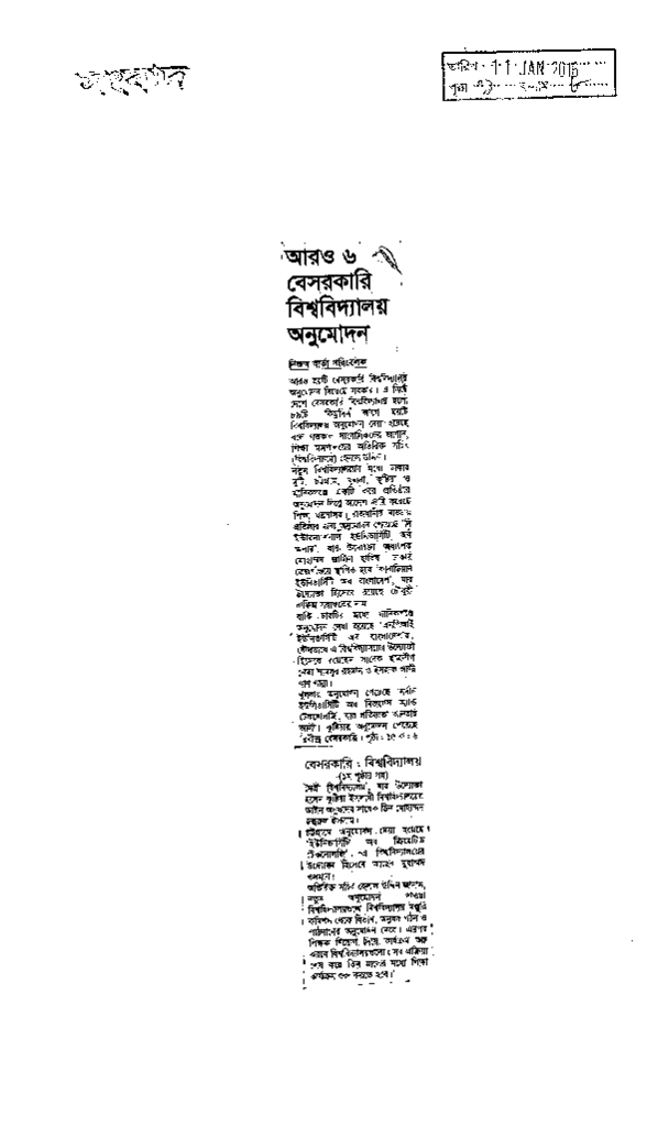 আরও ৬ বেসরকারি বিশ্ববিদ্যালয় অনুমোদন Published on Newspaper দৈনিক সংবাদ Category General Education General Education Higher Education Private Download