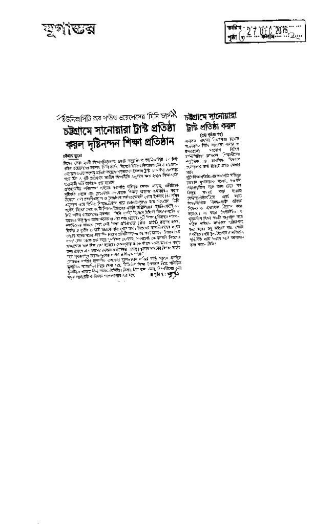 চট্রগ্রামে সানোয়ারা ট্রাস্ট প্রতিষ্ঠা করল দৃষ্টিনন্দন শিক্ষা প্রতিষ্ঠান Published on Newspaper দৈনিক যুগান্তর Category General Education General Education Higher Education Private Download