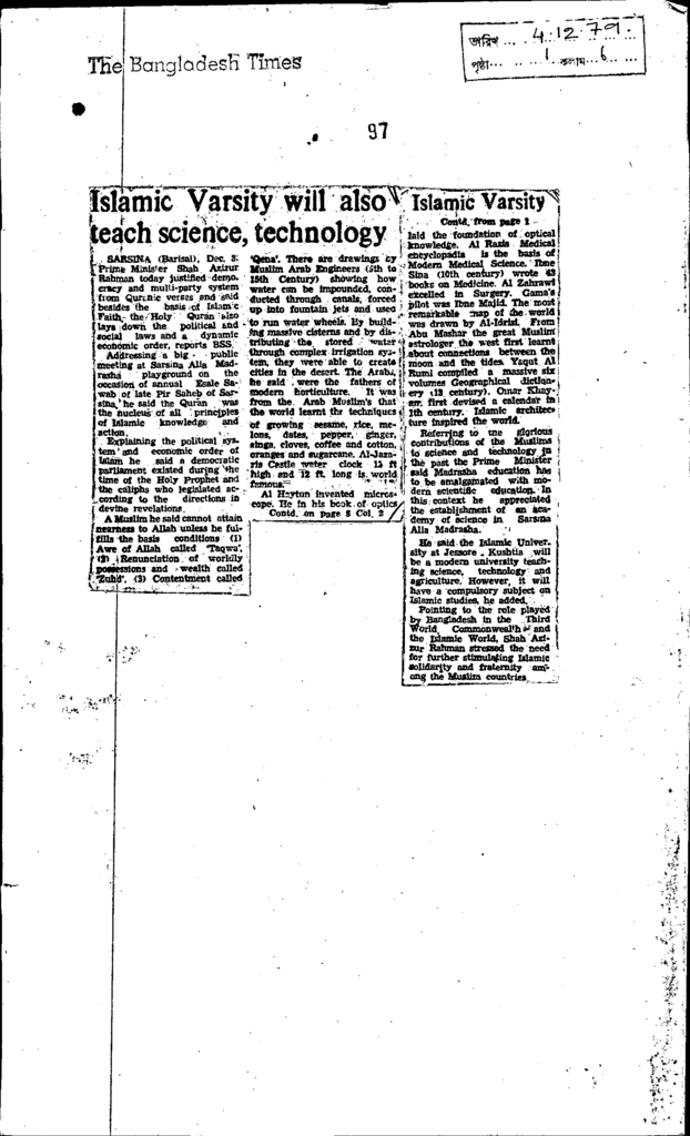 Islamic varsity will also teach science, technology Published on Newspaper The Bangladesh Times Category Science Education Download