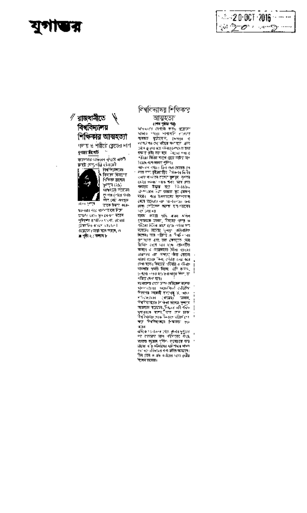 রাজধানীতে বিশ্ববিদ্যালয় শিক্ষিকার আত্মহত্যা Published on Newspaper দৈনিক যুগান্তর Category General Education General Education Higher Education Private Download
