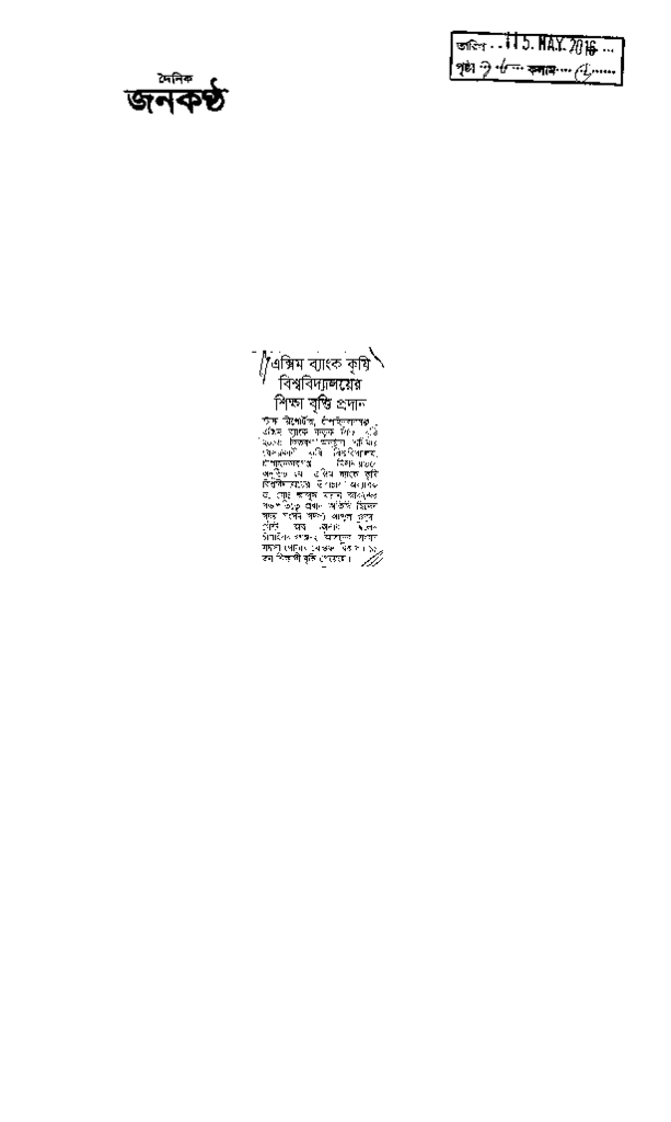 এক্সিম ব্যাংক কৃষি বিশ্ববিদ্যালয়ের শিক্ষা বৃত্তি প্রদান Published on Newspaper দৈনিক জনকণ্ঠ Category General Education General Education Higher Education Private Download
