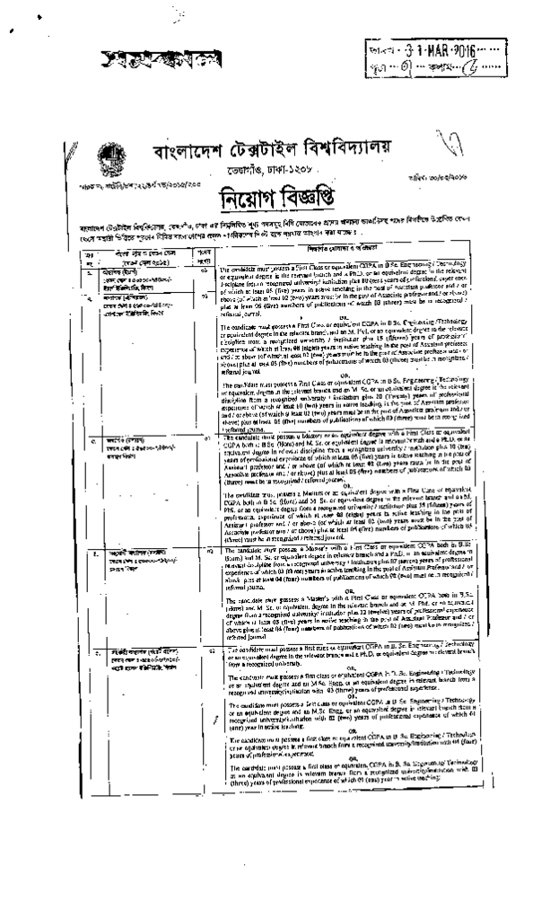 বাংলাদেশ টেক্সটাইল বিশ্ববিদ্যালয় : নিয়োগ বিজ্ঞপ্তি Published on Newspaper দৈনিক সমকাল Category Professional Education Professional Education Engineering Download