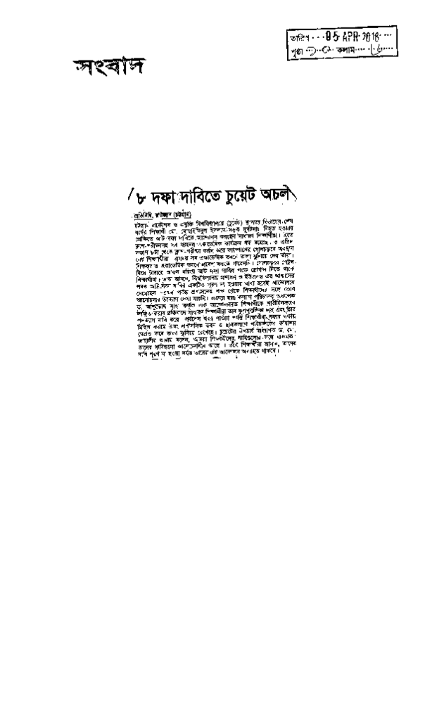 ৮ দফা দাবিতে চুয়েট অচল Published on Newspaper দৈনিক সংবাদ Category Professional Education Professional Education Engineering Download
