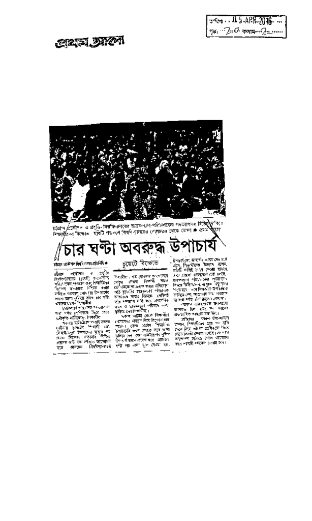 চার ঘন্টা অবরুদ্ধ উপাচার্য Published on Newspaper দৈনিক প্রথম আলো Category Professional Education Professional Education Engineering Download
