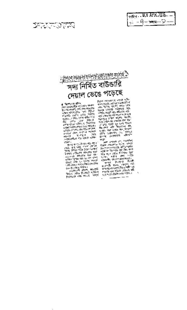 সদ্য নির্মিত বাউন্ডারি দেয়াল ভেঙে পড়েছে