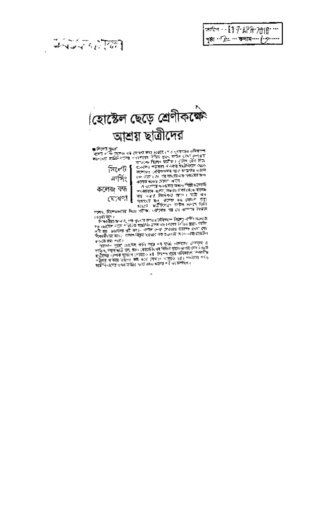 হোস্টেল ছেড়ে শ্রেণীকক্ষে আশ্রয় ছাত্রীদের Published on Newspaper দৈনিক সমকাল Category Professional Education Professional Education Medical Download