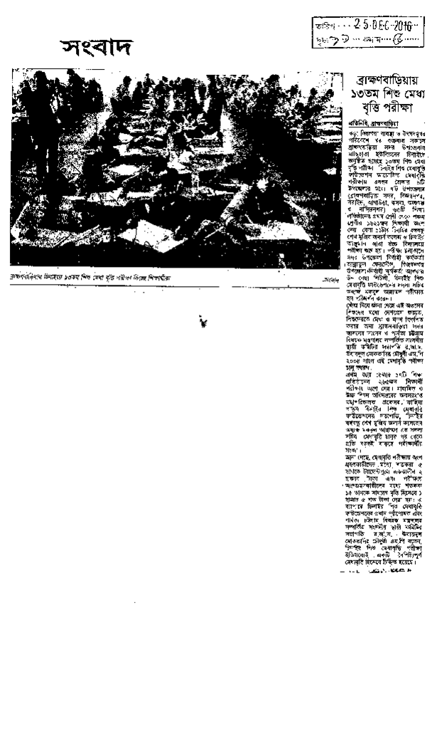 ব্রাক্ষ্ণমনবাড়িয়ায় ১৩তম শিশু মেধা বৃত্তি পরীক্ষা Published on Newspaper দৈনিক সংবাদ Category Child Education Download