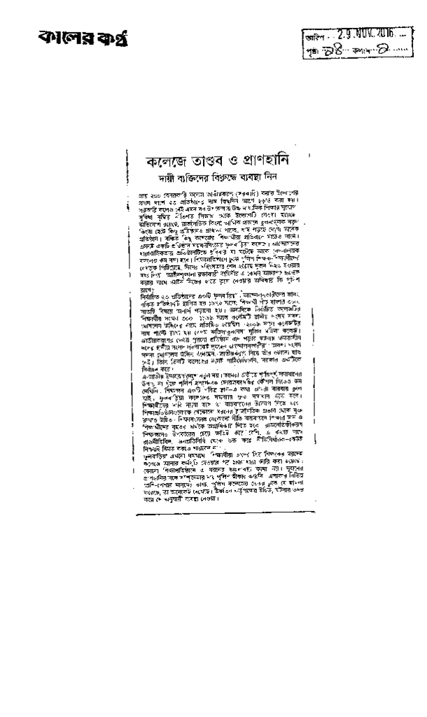 কলেজে তাণ্ডব ও প্রাণহানি Published on Newspaper দৈনিক কালের কন্ঠ Category Personal Opinion / Discussion / Commentary Personal Speech / Discussion / Comentary Secondary and Higher Secondary Education Download