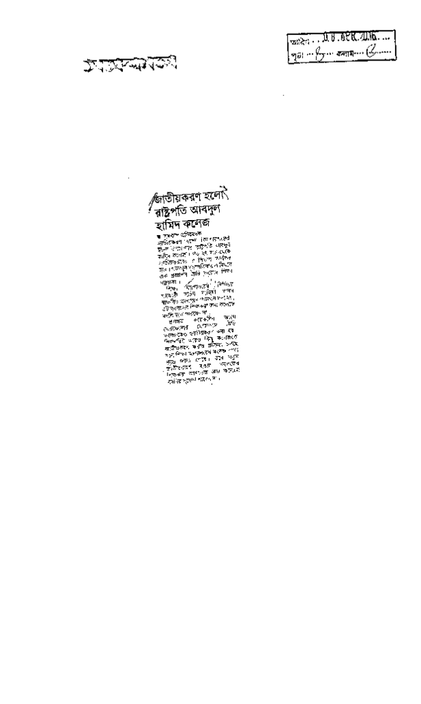 জাতীযকরণ হলো রাষ্ট্রপতি আবদুল হামি কলেজ Published on Newspaper দৈনিক সমকাল Category General Education General Education Download