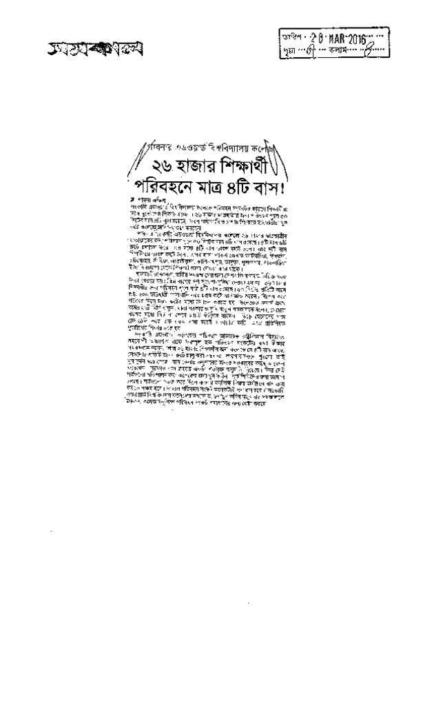 ২৬ হাজার শিক্ষার্থী পরিবহনে মাত্র ৪টি বাস ! Published on Newspaper দৈনিক সমকাল Category General Education General Education Download