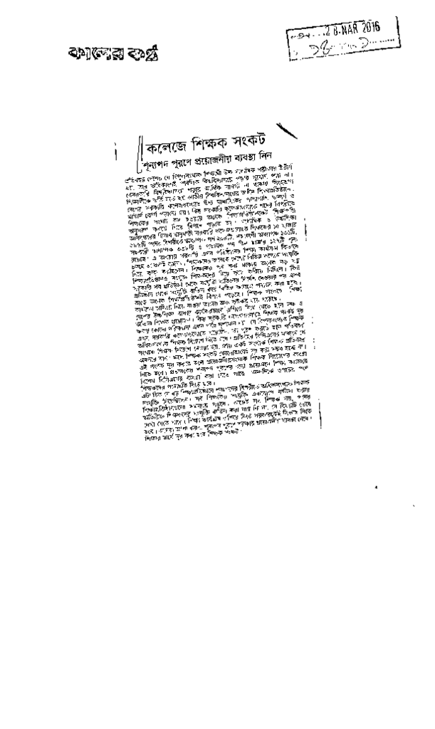কলেজে শিক্ষক সংকট Published on Newspaper দৈনিক কালের কন্ঠ Category Personal Opinion / Discussion / Commentary Personal Speech / Discussion / Comentary Secondary and Higher Secondary Education Download
